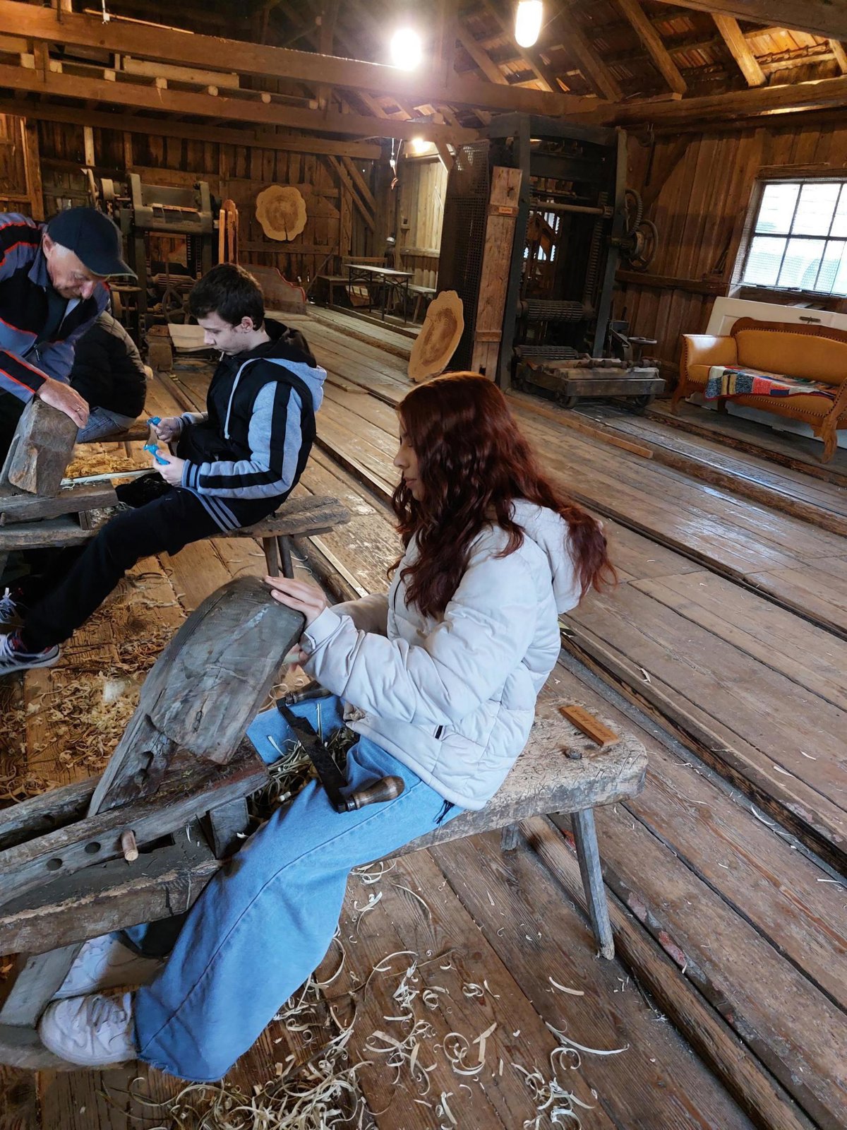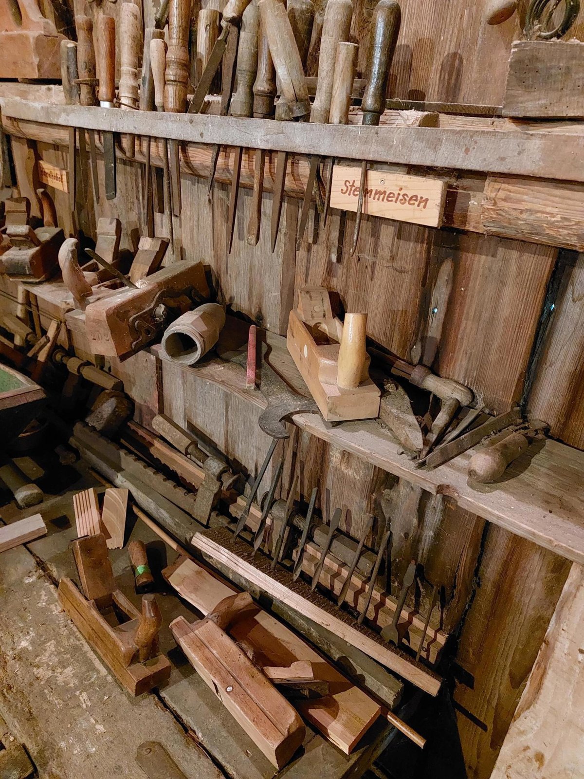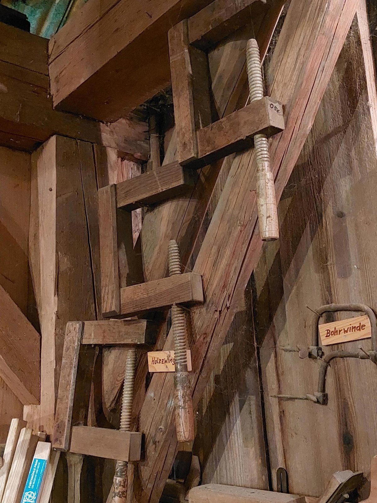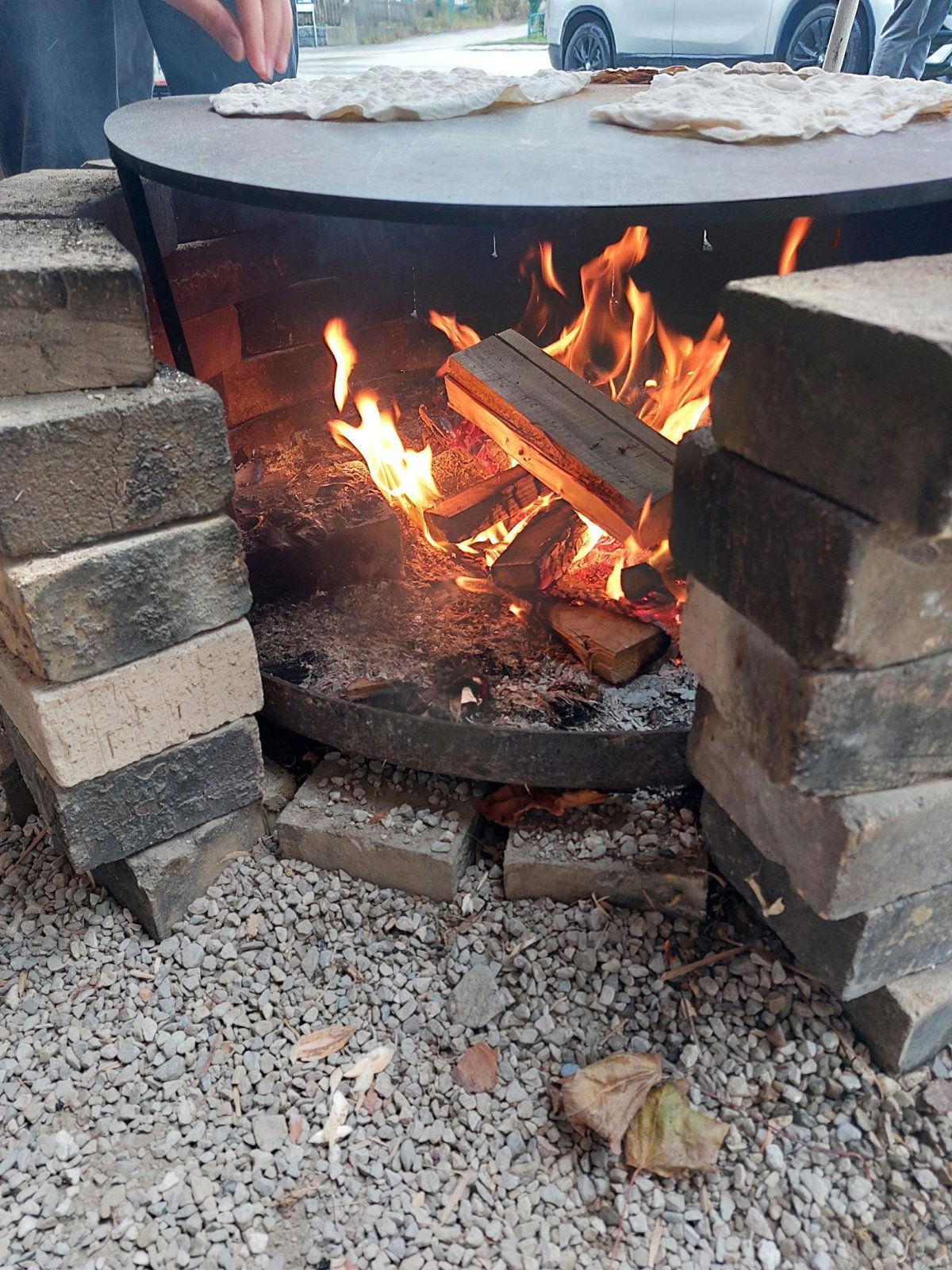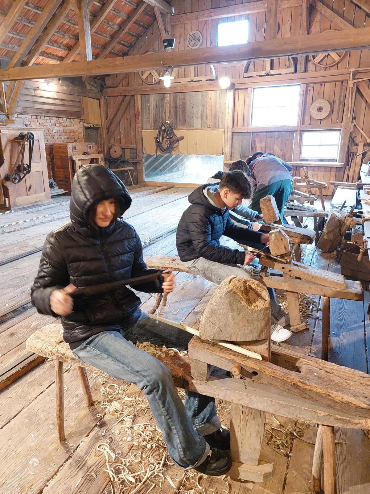 In der historischen Mühleneinrichtung durften wir den Weg vom Korn des Mahlbauern zum Brot nachvollziehen. Mitglieder des Kulturvereins Furthmühle in Pram boten einen interessanten Stationenbetrieb in Kleingruppen an: Holzstäbe wurden auf historischen „Hoanzlbänken“ geschnitzt, „Zelten“ wurden am offenen Feuer gebacken und zuvor aus Teig selbst ausgewalkt, der legendäre Transmissionsriemen der Mühle wurde uns vorgeführt und schließlich wurden wir auf den „Mühlenbären“ hingewiesen. Mehl, Haferflocken und Grieß wurden auf vielfältige Weise per Hand erzeugt, Getreidesorten konnten bestimmt werden und zum Abschluss bekam jeder ein kleines Brieflein mit selbst erzeugtem Grieß und Mehl mit auf den Weg.