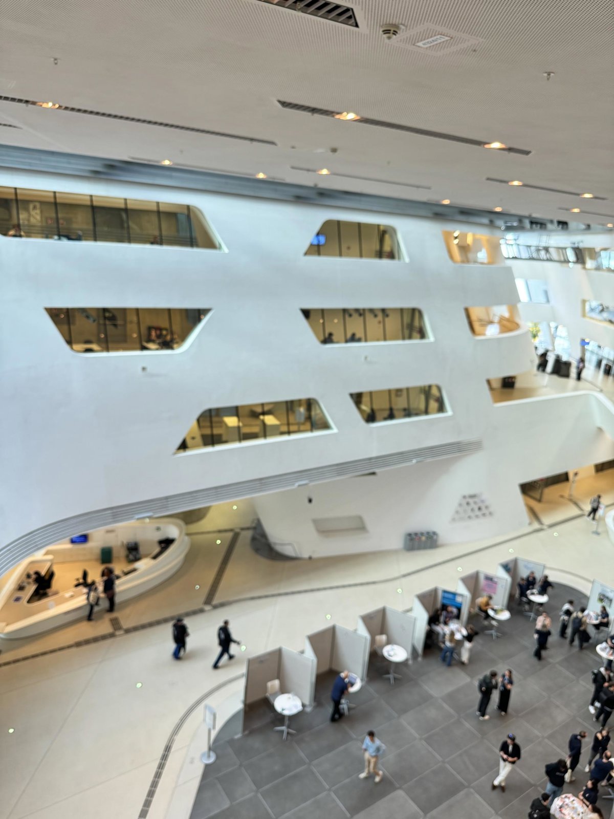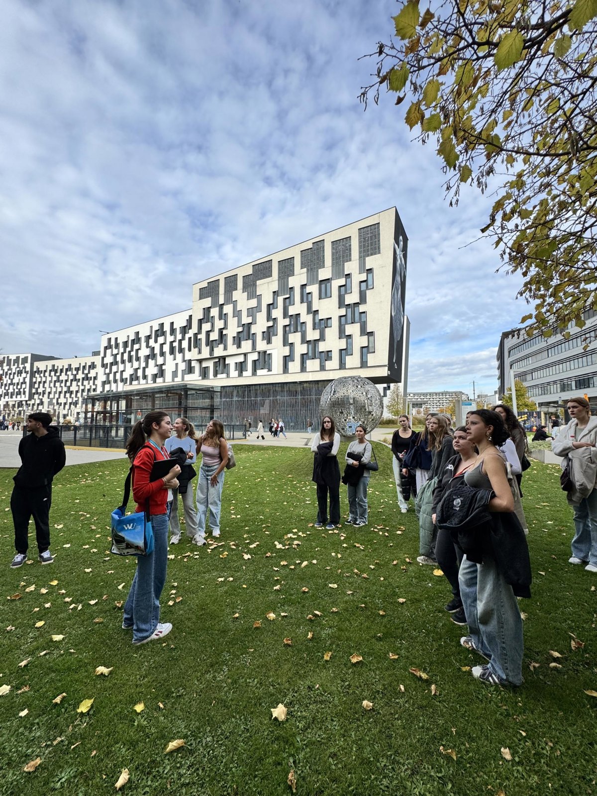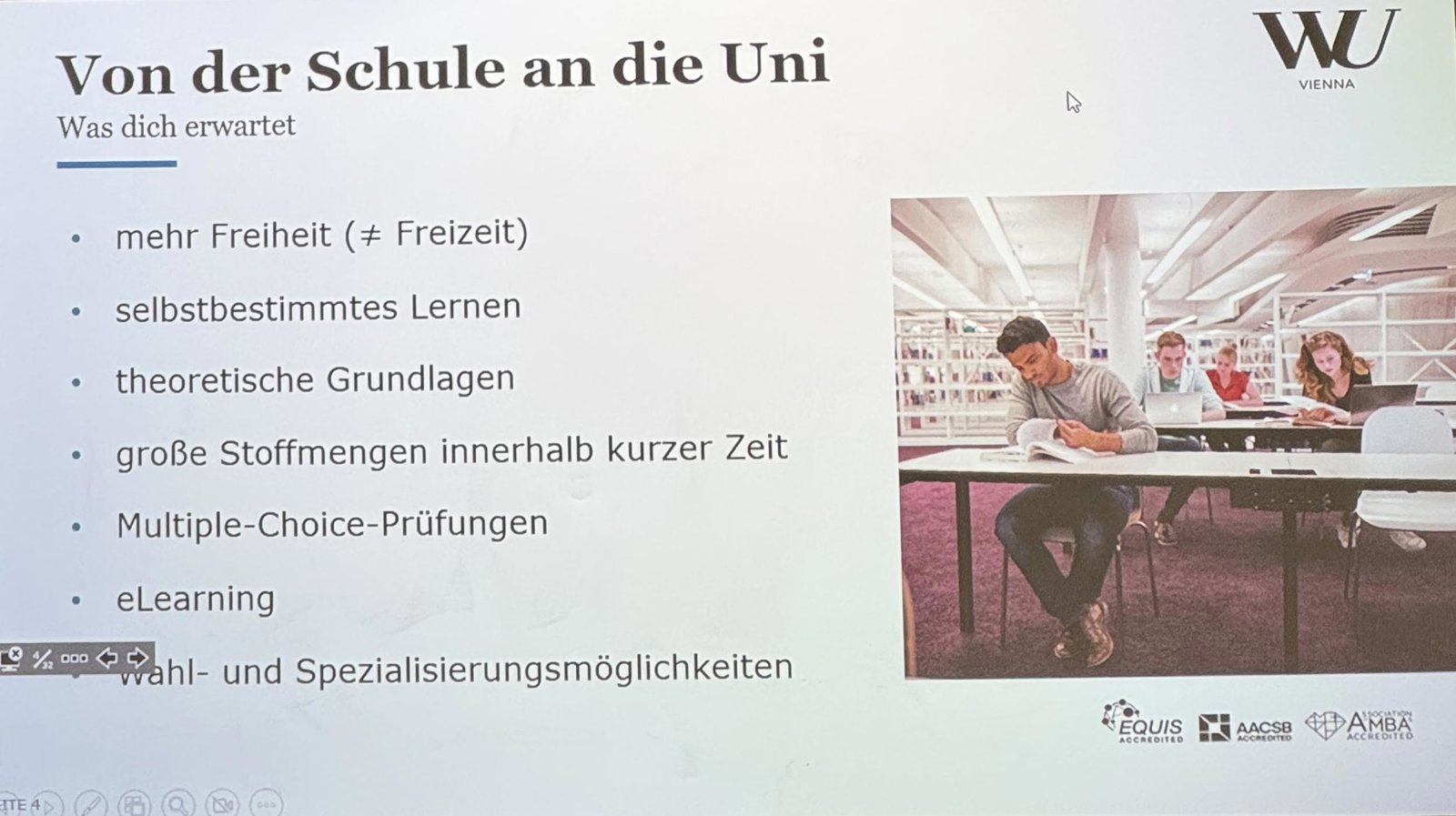 Studierende der WU haben die Schüler:innen darüber informiert, wie das Studieren an der WU organisiert ist. Die Bibliothek - ein Gebäude der renommierten Architektin Zaha Hadid - war ein Highlight.