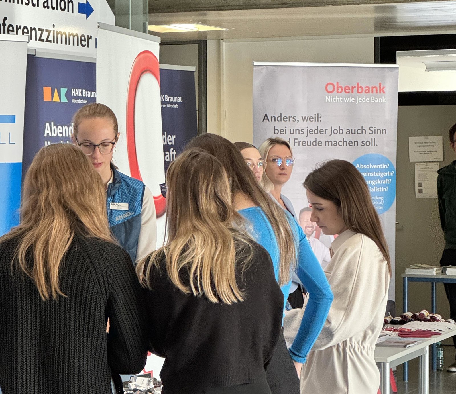 Die Schüler:innen der 2. bis 5. Klassen HAK und HAS hatten am Karrieretag die Gelegenheit, sich über Karrierechancen nach der Schule und Ferien-Jobs zu informieren. Unternehmen und Weiterbildungsinstitute nutzten die Gelegenheit, sich als attraktive Arbeitgeber bzw. Ausbildungsmöglichkeit den Schüler:innen vorzustellen.