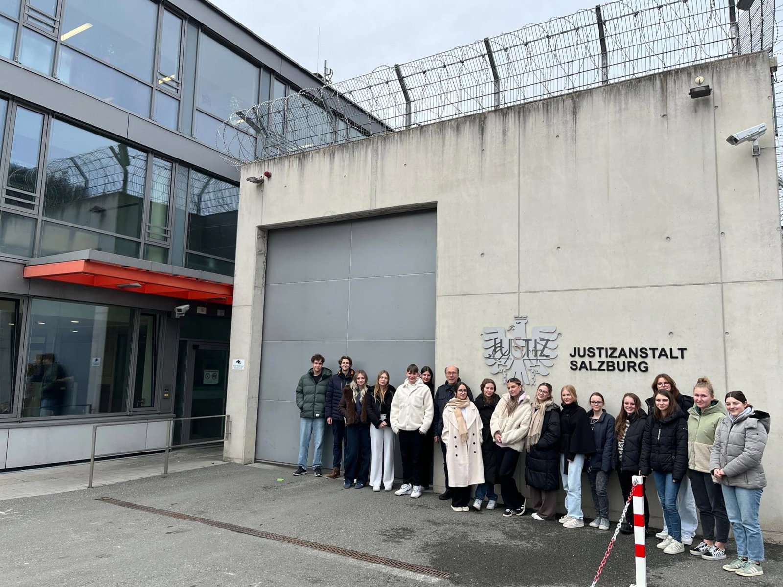 Am 11. Februar 2026 besuchte die Klasse 5BHK gemeinsam mit Professor Birkenmeyer die Justizanstalt in Puch bei Hallein. Dort wurden die Jugendlichen von einem leitenden Justizwachebeamten empfangen, der sie über die Aufgaben der Anstalt, den Tagesablauf der Insassen und die umfangreichen Sicherheitsmaßnahmen informierte. Im Anschluss folgte ein Rundgang durch das Gebäude, bei dem sowohl Hafträume als auch Arbeitsbereiche wie Küche, Wäscherei und Werkstätten besichtigt werden konnten. Auch der Spazierhof mit Sportmöglichkeiten wurde vorgestellt.