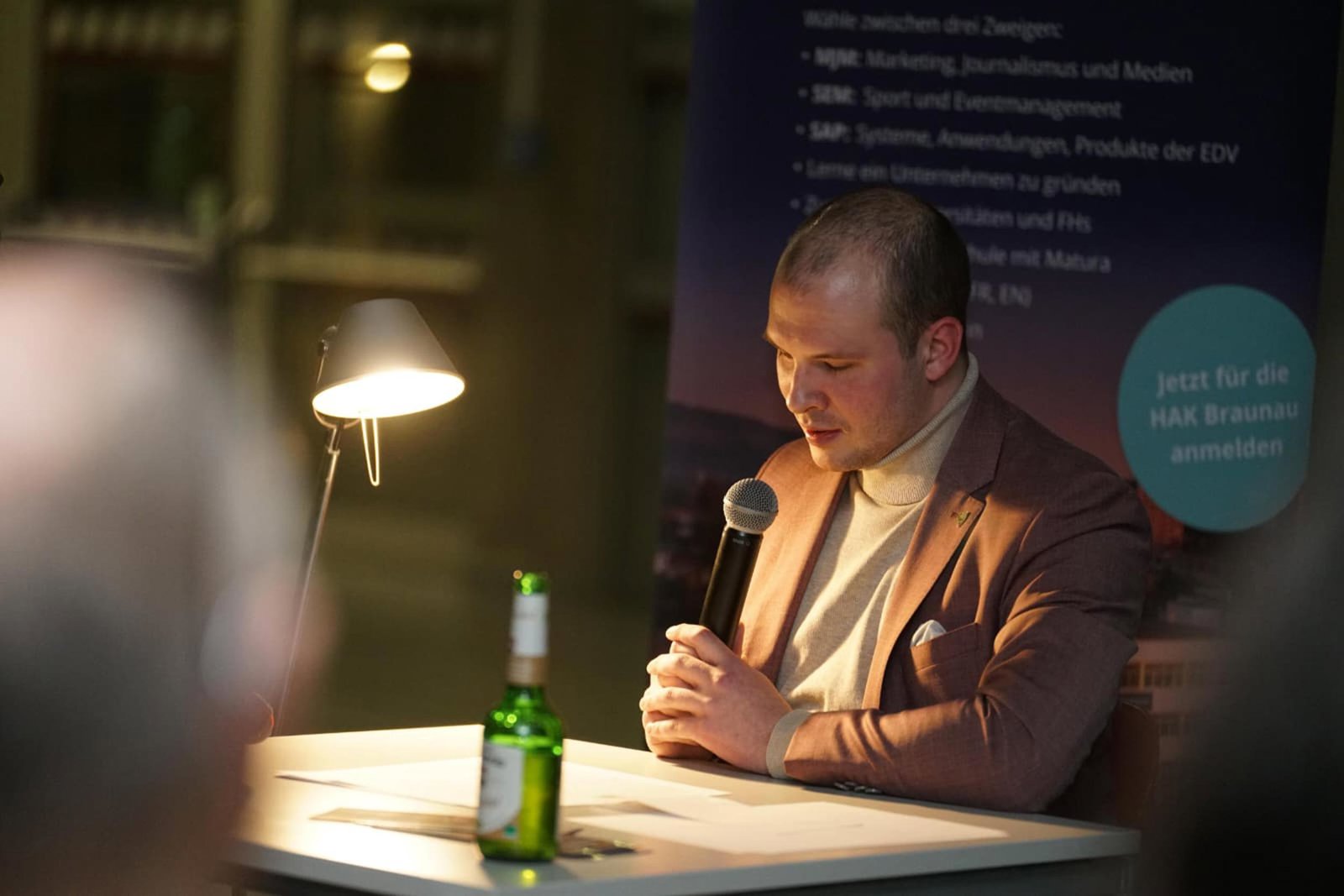 Geschichten über Mord und Totschlag aus dem gesamten Bezirk standen am 23. Jänner im Mittelpunkt, als der Braunauer Autor und Abendschüler der HAK seine bisher zwei Bände umfassende Buchreihe "Kurioses Braunau" präsentierte. Die Verbindung von Historischem, Lokalem und Schockierendem begeisterte das zahlreich erschienene Publikum, das, begrüßt von Direktor Thomas Silberhumer, unsere Aula auch an einem Freitag Abend mit Leben füllte.