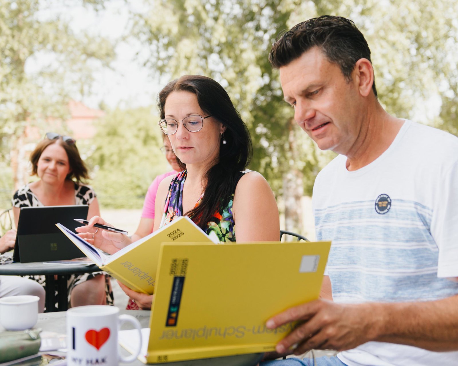 Eine Figur besteht aus Bild und Text. Hier werden mehrere nebeneinander dargestellt. Am besten sieht das aus, wenn jede Figur eine andere Akzentfarbe bekommt.