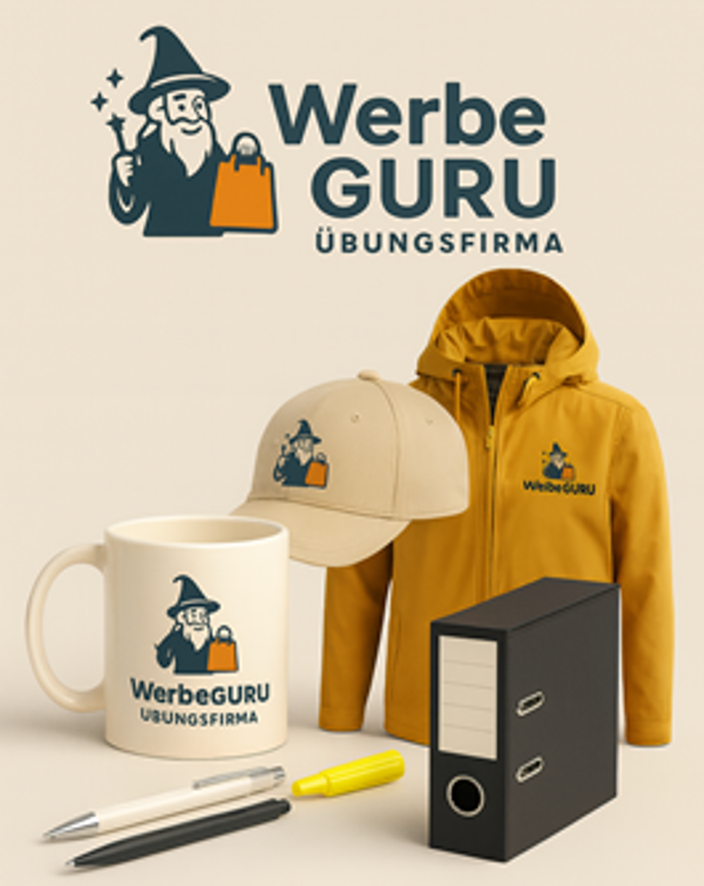 Die Werbeguru GmbH ist eine innovative Übungsfirma, die sich auf den Handel mit Werbe- und Büroausstattung sowie Geschenkartikeln spezialisiert hat.